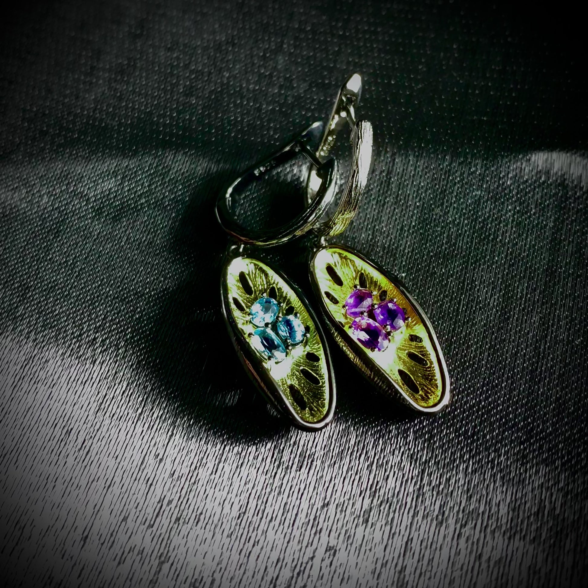 Sterling silver art earrings with dark finish, inspired by the psychedelic fungi. While you appreciate its mystery, let the hallucination take you into the glowing darkness.
