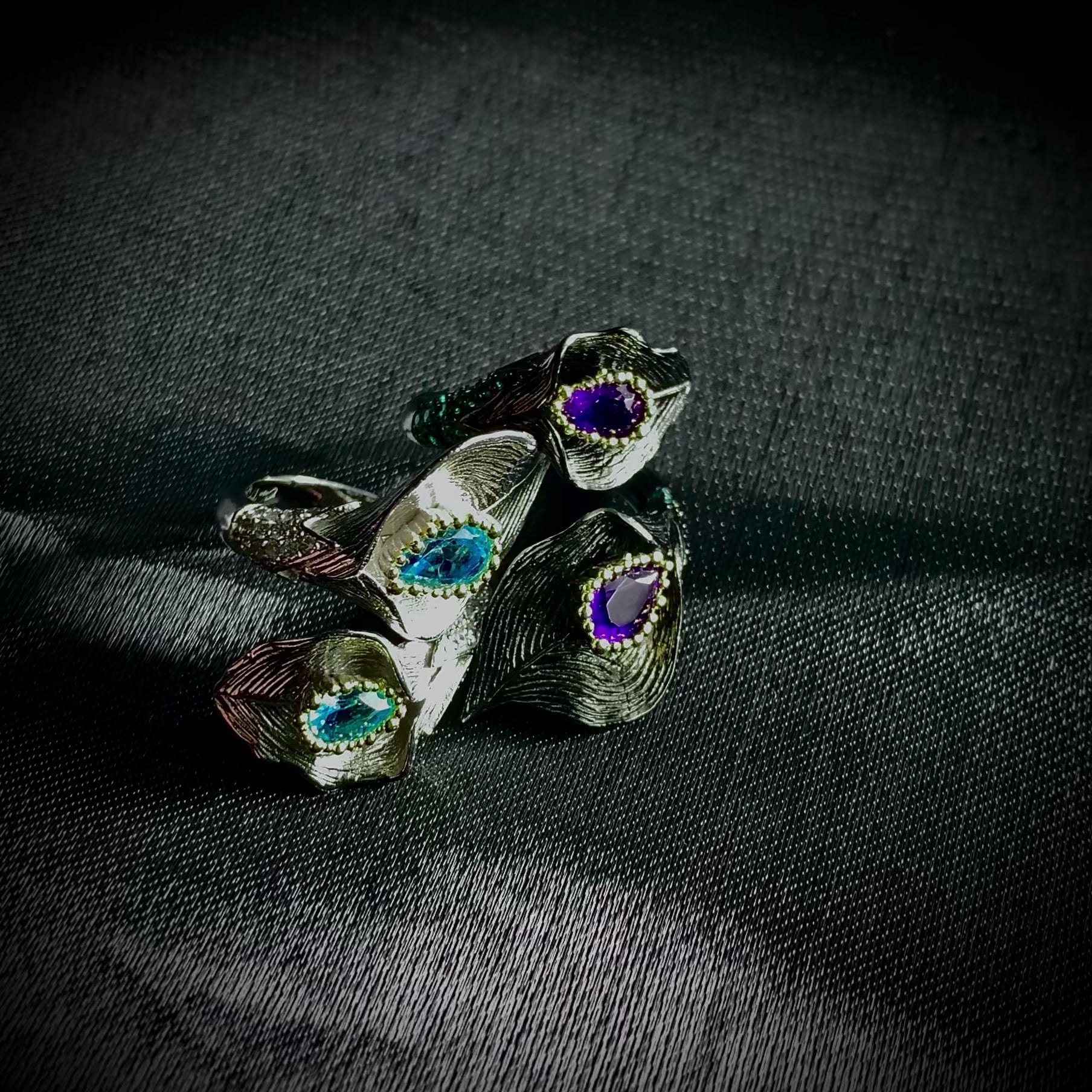 Sterling silver art ring inspired by the dripping from calla plant. Two choices of platings to differentiate your subtle fingertips during the day and night.