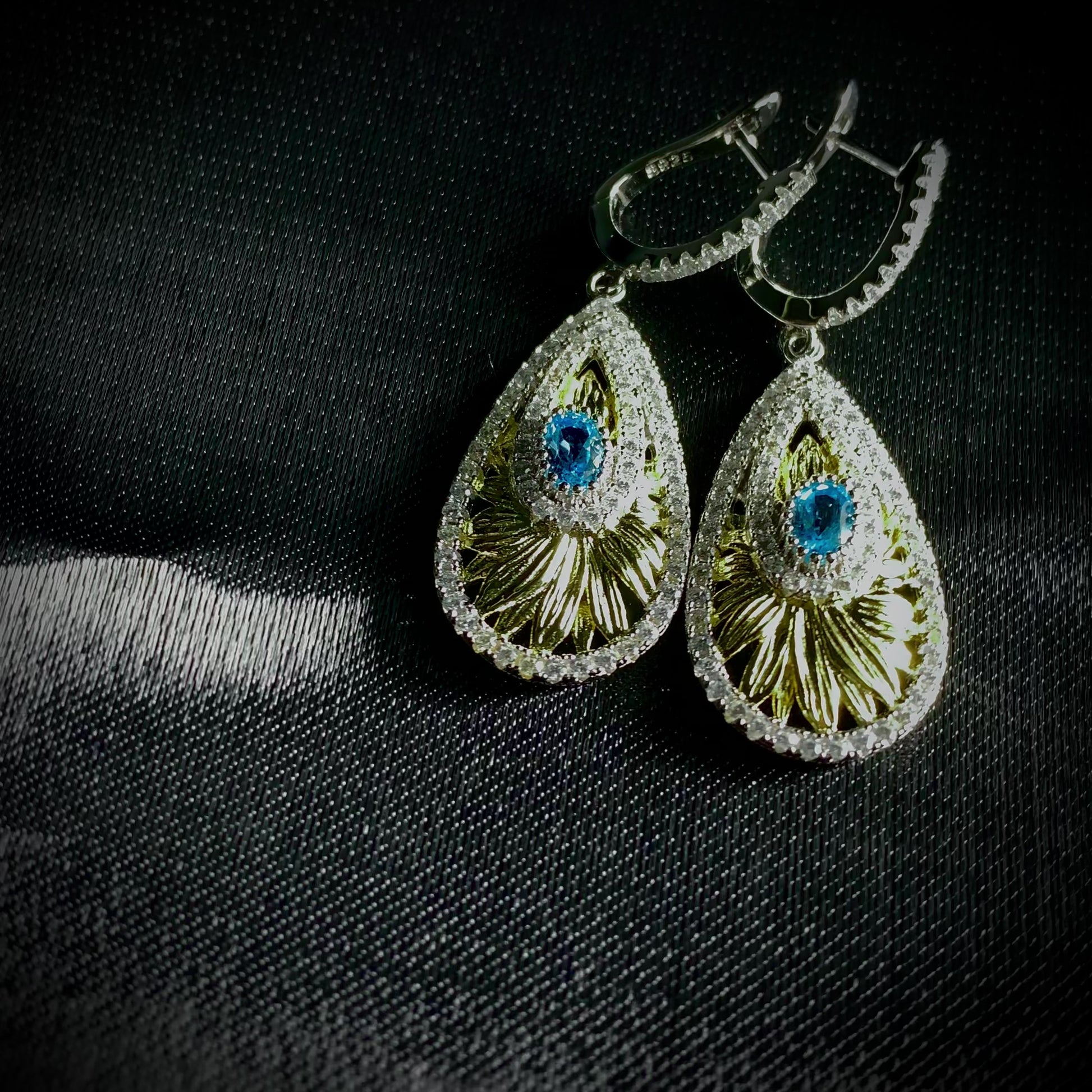 Sterling silver art earrings inspired by the solar corona. When the tender gemstone is engraved in the golden solar waves, do you think they generate stars?